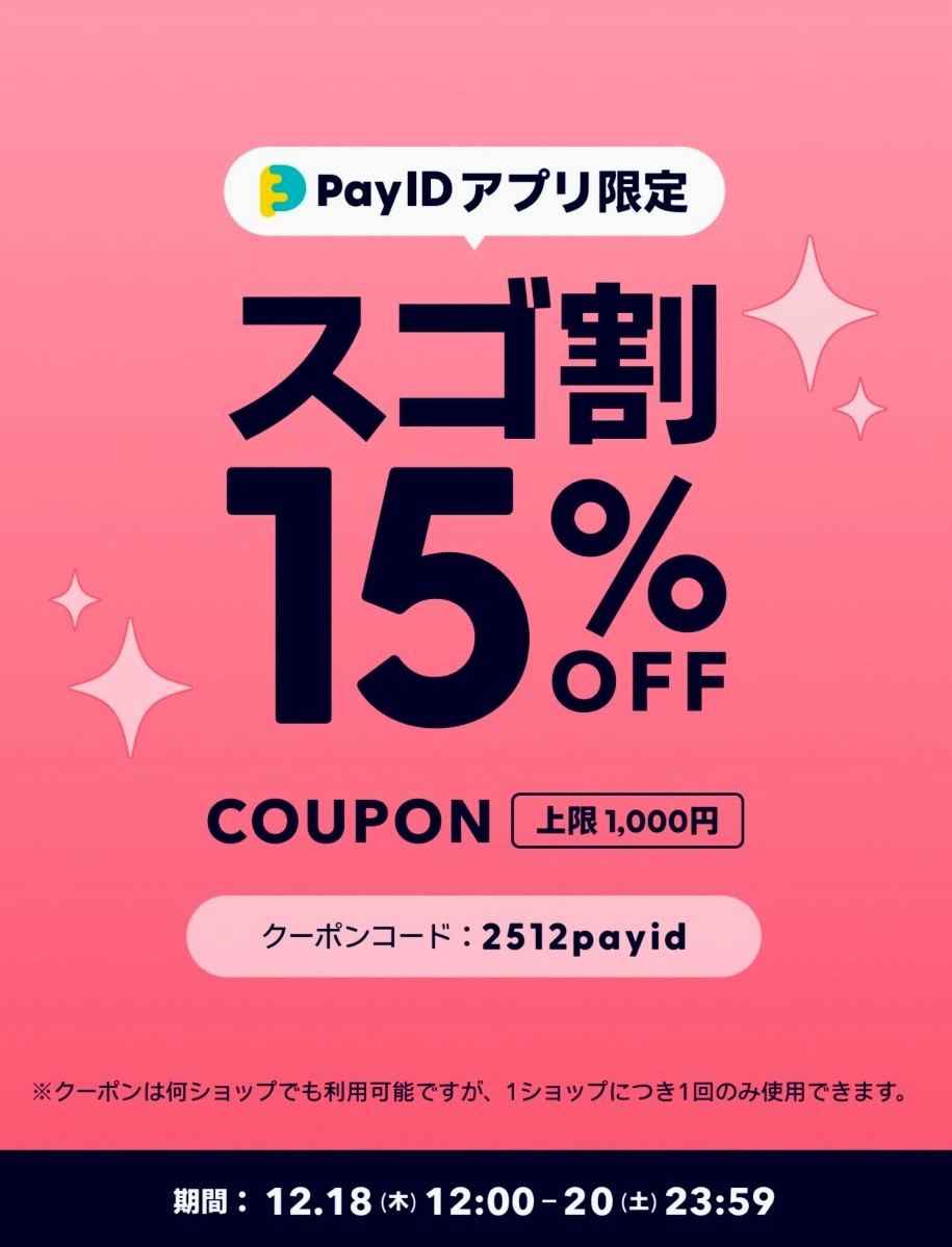 【12/18開始】15%OFF!「Pay IDアプリ限定 スゴ割」キャンペーン