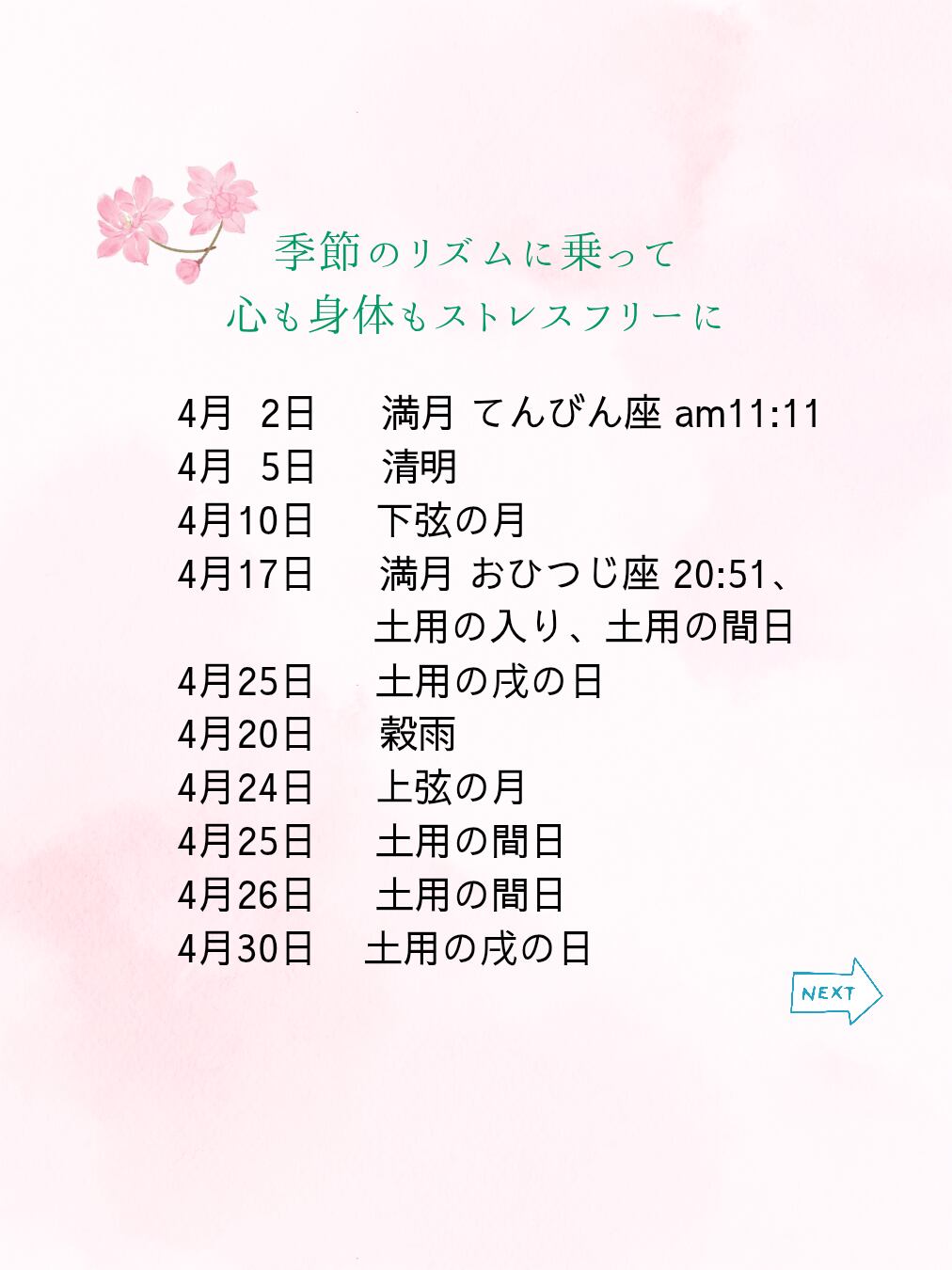 4月も心地よくお過ごしください♡